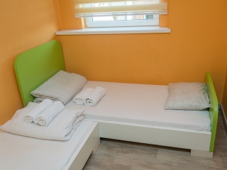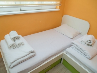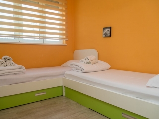 Poseduje 3 komforne spavace sobe i to: 1 sobu sa bracnim krevetom, 2 sobe sa po 2 singl kreveta i veliki dnevni boravak sa ugaonom garniturom koja se razvlači po potrebi.